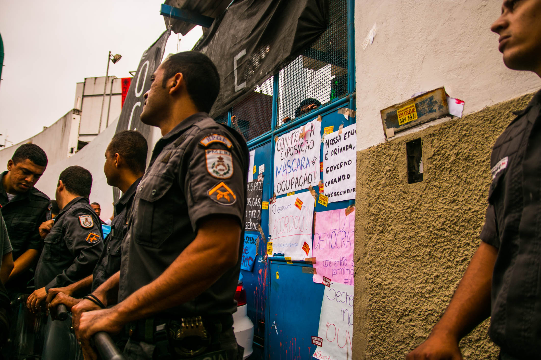 Os estudantes secundaristas do estado do Rio de Janeiro ocuparam a SEEDUC pela segunda vez na segunda-feira, dia 30 de maio, desde então vêm tentando um diálogo com o governo do estado. Em vez de negociar com os estudantes, o governo do estado colocou Policiais Militares de plantão 24 horas por dia, restringindo a entrada de pessoas, de alimentos e água.
